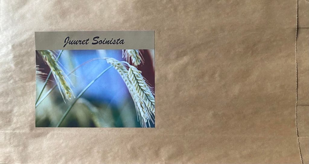 Tuli juhlavuosia Suomessa ja Soinissa. Tuli kasätapahtuma Soinillinen. Ja mietittiin taas juhlatoimikunnassa erilaisia asioita Soinin hyväksi. Oli tullut jo kotoinen ajatus yhteisestä ruisleipätaikinasta, johon Soinin emännät tuo vanhaa juurta ja leivotaan teemalla Juuret Soinista. Syntyi lyömätön idea puhtaasta aidosta ruisleivästä antaa vieraileville. ”Juuret Soinista” teksti, ruskea paperipussi ja siinä rukiintähkistä valokuva painettuna. (Saatoin joskus kirjoittaa käsialalla tuoteselosteen toiselle puolelle: Leivottu vanhaan juureen suomalaisesta luomurukiista, vedestä, jodioidusta suolasta ja paistettu leivinuunissa. Ei sisällä mitään muuta jauhoa tai lesettä.)
